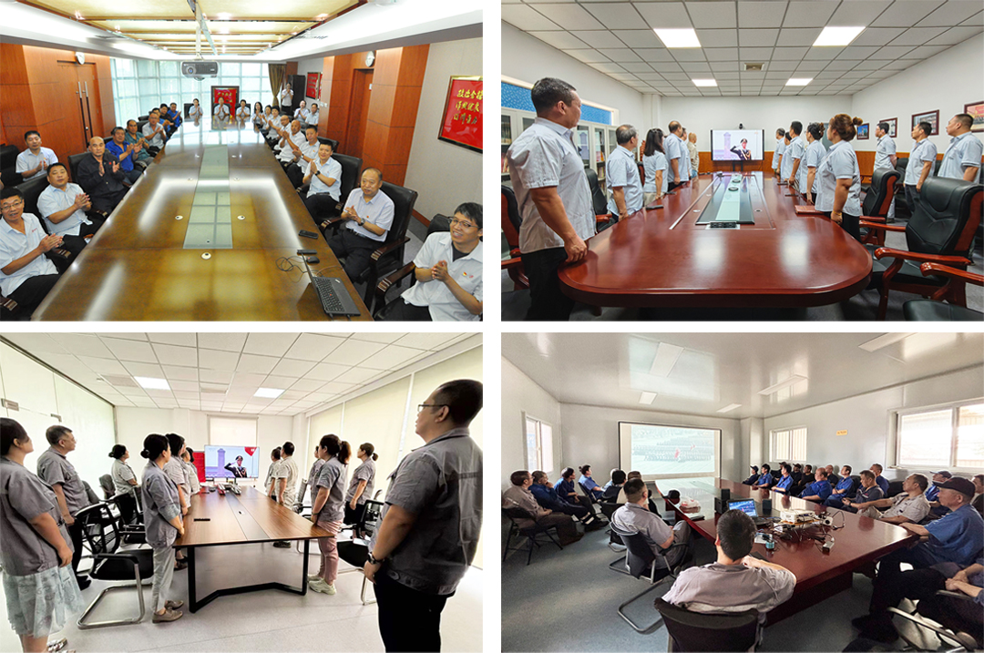 在崔洪金出席閱兵式的同時(shí),安達集團組織各部門(mén)及各分公司人員在各自公司所在地觀(guān)看閱兵式現場(chǎng)直播。集團總部及各分公司的會(huì )議室、辦公區域等場(chǎng)所,都聚集了眾多員工,大家懷著(zhù)激動(dòng)的心情,共同觀(guān)看閱兵式的精彩畫(huà)面。當整齊的方陣、先進(jìn)的武器裝備依次通過(guò)天安門(mén)廣場(chǎng)時(shí),全體人員心潮澎湃,現場(chǎng)不時(shí)響起熱烈的掌聲。